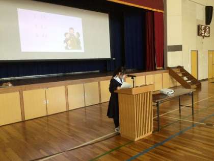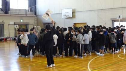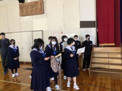 6年生の子たちに逢妻中学校をよく知ってもらおうと、学校にまつわるクイズを出題しました。みんな、とても楽しんで参加してくれました。