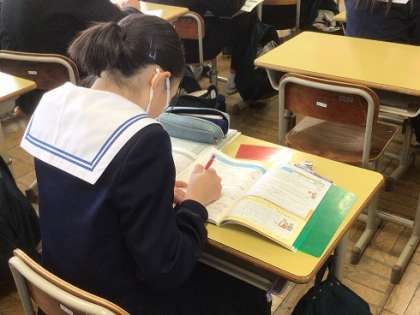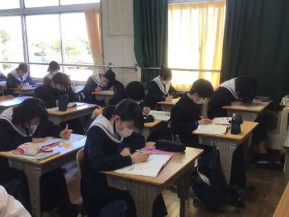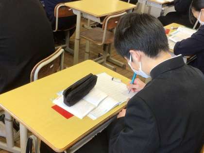 2月7日(水)テスト週間・教育相談スタート3 公開日 2024/02/07 更新日 2024/02/07 お知らせ 教育相談を待っている生徒や終わった生徒は、テスト勉強を進めています。テスト課題のワークに取り組むなど、集中して学習している姿を多く見かけました。 学年末テストについては、1・2年生が2/14(水)から、3年生が2/15(木)から始まります。1年間のまとめとして、全力で準備していきましょう。