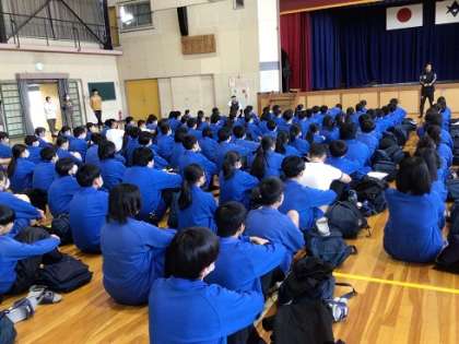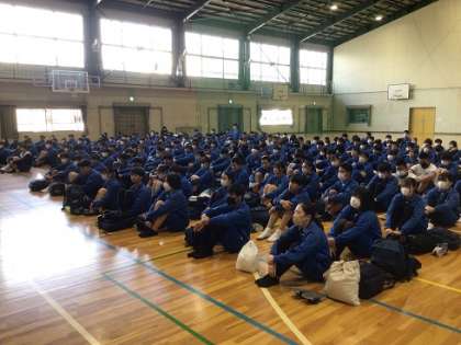 最初に体育館に集まり、諸注意を聞きました。その後、それぞれの分担場所に分かれて大掃除を始めました。