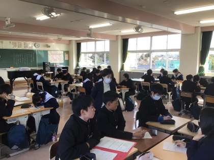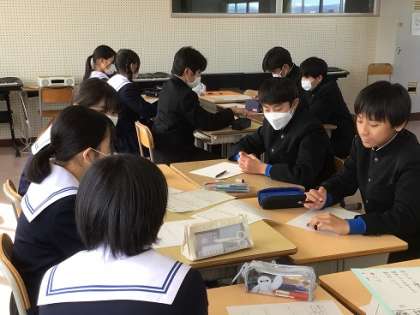 各クラスの代議員が縦割りの団ごとに集まり、これまでの取組を振り返りました。今の学年もあとわずかとなりました。残りの毎日を充実させることが、4月のよいスタートにつながるはずです。