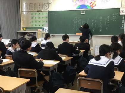 学年末テストが終わりました。今日の授業から、テストの解答用紙が返ってきます。今回の結果と取組を振り返り、次の学年の学習も充実させていきたいですね。写真は1年生の様子です。