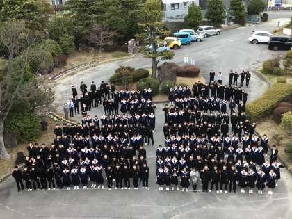 3年生が、卒業アルバムに掲載する学年写真を撮影しました。正門を入ったロータリーに集合です。できあがりが楽しみですね。