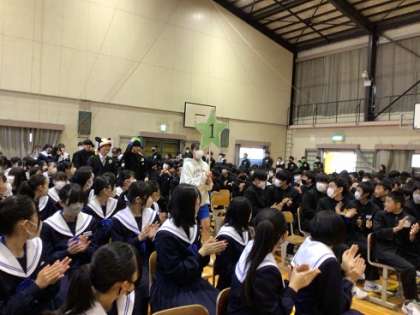 3年生の入場です。3年生の先生たちには、キャラクターになってもらいました。