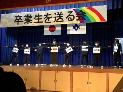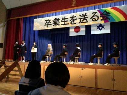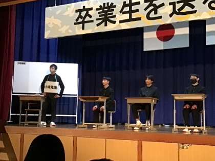 3年生の思い出の劇の様子です。各学級のエピソードや担任の先生のものまねなどで、会場を大いに盛り上げてくれました。