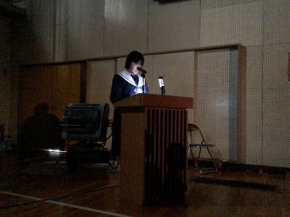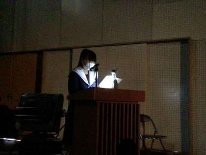 在校生から3年生への感謝のメッセージです。部活動の場面など、3年生とのかかわりの中で、自分自身が成長することができた思い出などが語られ、心温まる内容でした。