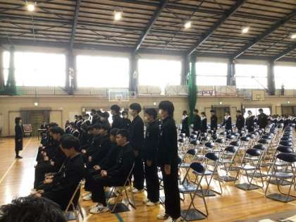 卒業式の予行演習を今年は「校内卒業式」と位置づけました。卒業式当日は、1・2年生は参加しません。よって、この校内卒業式が、1・2年生とともに3年生が卒業を迎える場となります。