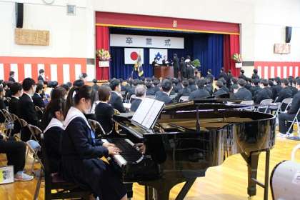 同じく卒業証書授与の様子です。2年生の生徒が、素敵なBGMを奏でてくれました。