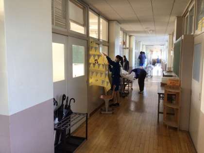 3年生の教室を掃除をしたり、掲示物をはがしたりもしました。