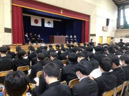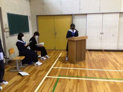 3月12日(火)生徒会役員選挙1 公開日 2024/03/13 更新日 2024/03/13 お知らせ 1、2年生による令和6年度前期生徒会役員選挙を行いました。前回9月の選挙ではリモート演説としましたが、今回は体育館に集まっての立会演説としました。