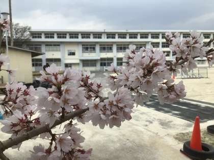 新入生や進級する2、3年生を迎えるかのように、桜が咲き始めています。写真は、南門付近の様子です。