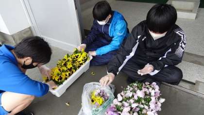 新学期や入学式に向けて、ボランティアとして学校の花壇の整備活動に取り組みました。大人とも一緒に活動しました。きれいな花とともに、新学期を迎えることができます。皆さん、お疲れ様でした。