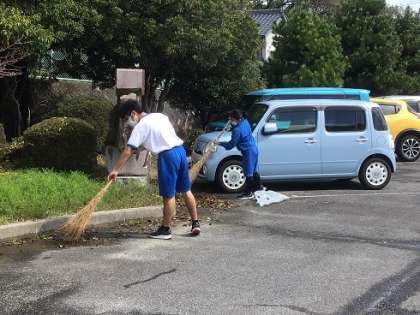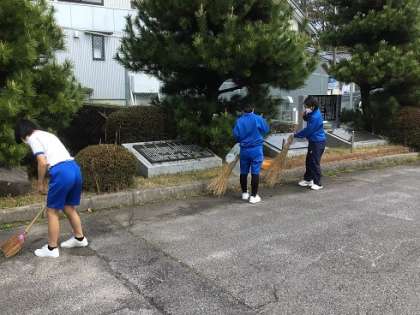 正門を入ったロータリー付近の清掃をしています。落ち葉やゴミなどがたまっていましたが、熱心に取り組んで、きれいにしてくれました。