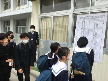 学級発表の様子です(写真は3年生)。新しい学年、新しい学級…そして新しい自分。今日からスタートです。力を合わせ、一人一人が過ごしやすい学級にしていきたいですね。