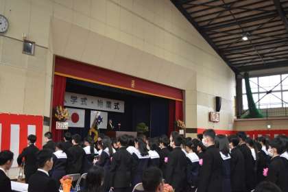 入学認定です。担任の先生が、新入生一人一人を呼名しました。