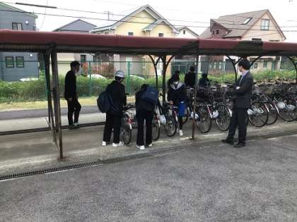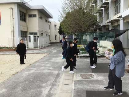 先週の金曜日の入学式・始業式を終え、今日から本格的な学校生活が始まりました。写真は、朝の登校の様子です。