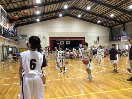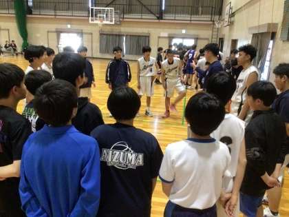 協会等が主催する春の大会が始まっている部活動があります。今日、逢妻中学校はバスケットボール男子の会場でした。写真は試合前のバスケットボール部男子の様子です。