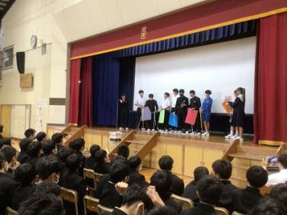 4月15日(月)前期全校決起集会(新入生歓迎会)5 公開日 2024/04/15 更新日 2024/04/15 お知らせ 最後に、組団(学年縦割り)カラーの抽選を行いました。これからの学校生活の様々な場面で、学年を越えた逢中生の交流が見られることを期待しています。