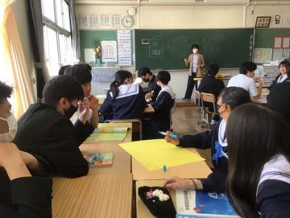 同じく3年生です。上が社会科、下が英語科の様子です。英語は、この4月から新しく着任されたALTの先生です。