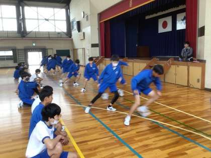 反復横跳びです。素早さとタイミングに加えて、スタミナも必要ですね。