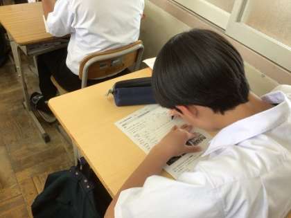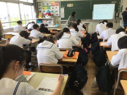 2年生の英語科です。英単語を繰り返し練習しています。がんばって覚えていきましょう。