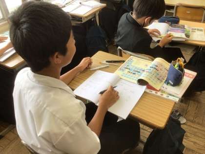 2年生の理科です。ビンゴをしながら元素記号の学習をしていました。