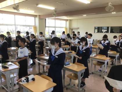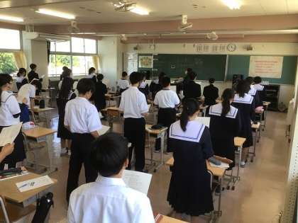 1年生の音楽科です。校歌を大きな声で元気よく歌っています。式典などでしっかりと歌うことができるように覚えていきましょう。