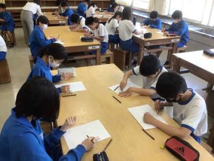2年生の美術科です。自分の手をデッサンしています。てをじっくりと観察しながら集中して取り組んでいました。