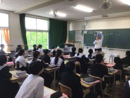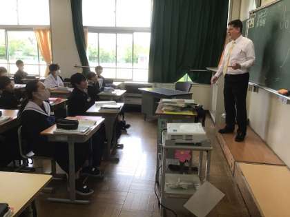1年生の英語科です。ALTの先生による英語での自己紹介です。とても楽しく聴くことができましたね。