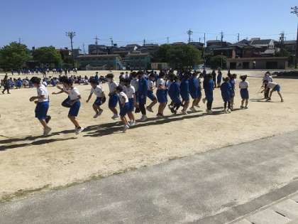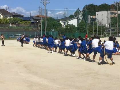 綱引きと大繩の種目練習をしています。互いに声をかけ合ってがんばっていました。