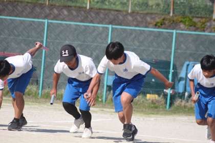 写真はリレーの練習風景です。やはりバトンパスがカギとなります。確認と練習をがんばっていきましょう。
