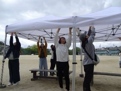 夏が近づいてきました。熱中症予防を始めとする逢中生の暑さ対策のため、育友会の活動として、今年もミストシャワーを設置しました。