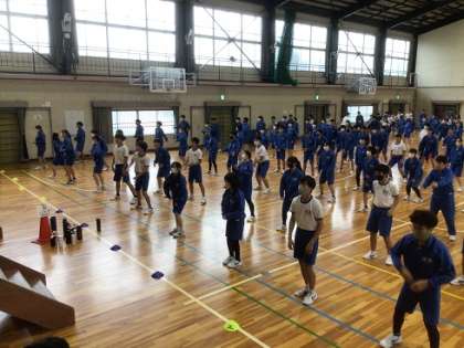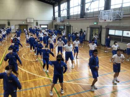 3年生のダンスです。今日は、学年みんなで体育館に集まっての練習です。