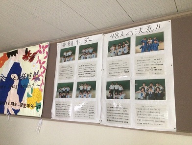 2年生の昇降口です。各学級の前期リーダーを紹介しています。リーダーを中心に、一人一人がよりよい学校生活の実現を目指し、2年生として成長していく姿を期待しています。