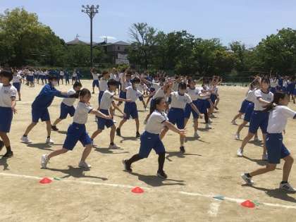 3年生の学年演技の練習です。見ている人たちを元気にしてくれるダンスを目指しています。