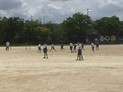 1年生の保健体育科の授業です。アルティメットに挑戦です。アルティメットとは、フライングディスクをパスしながら運ぶ競技です。ディスクを投げたり、キャッチしたりしながら練習をしていました。