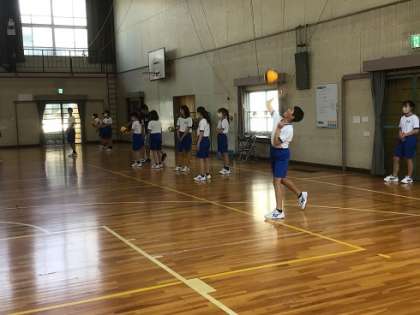2年生の保健体育科です。体育館でバレーボールの学習を進めています。今日はサーブの練習をがんばっていました。