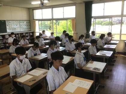 写真は、1時間目のテスト直前の3年生です。社会科のテストから始まりました。