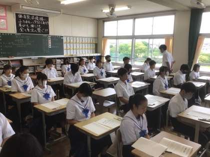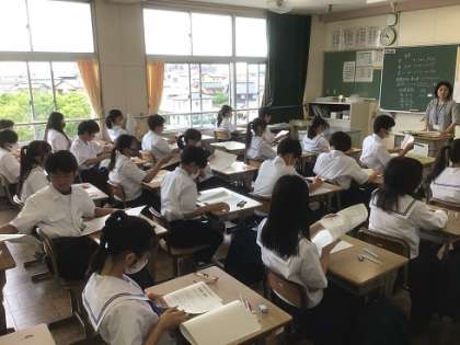 いよいよ最後の教科になりました。写真は2年生です。英語科のテストに臨みます。最初はリスニング問題からスタートしました。