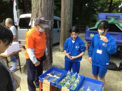 地域の方から朝市の始まりなどについてお話を聞いた後、それぞれの活動に分かれました。
