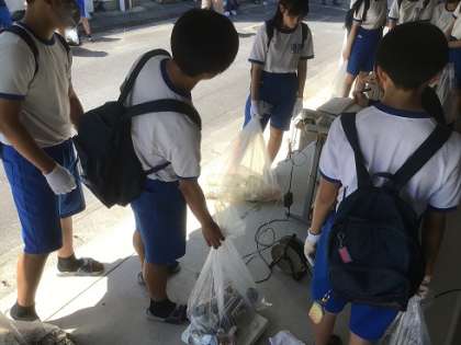 集めたゴミは、燃えるゴミや燃えないゴミ等に分別して計量し、班単位やクラス単位で競いました。