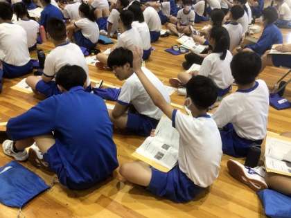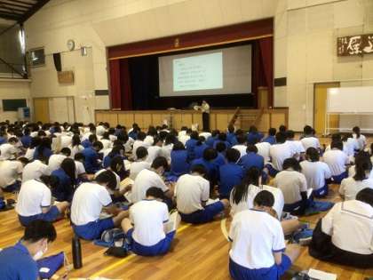 明日から3日間、修学旅行に出かけます。3年生はとても楽しみにしている行事です。今日は学年集会を開いて、最終確認をしました。この修学旅行では、生徒・教師・保護者全員がハッピーになれることを目指しています。