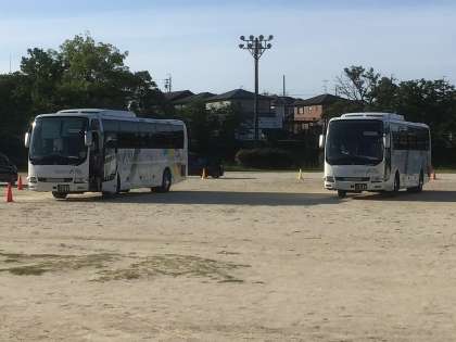 さあ出発です。バスもやってきました。天気もバッチリです。送迎くださった保護者の皆様、ありがとうございます。