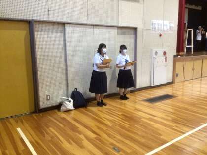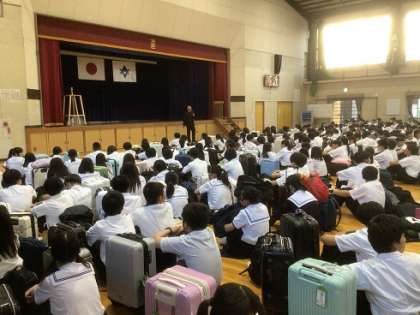 学校に到着しました。帰着式の様子です。