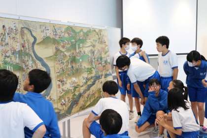 上の写真は、長篠合戦の屏風図です。合戦図や地形図から読み取ったことをもとに、長篠の戦いについて理解を深めました。
