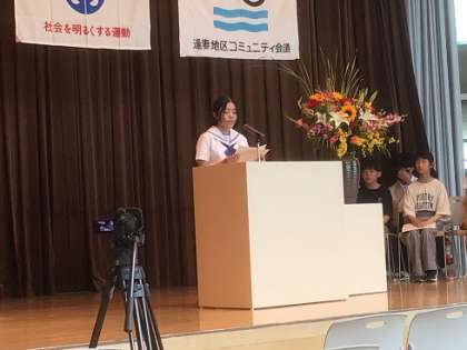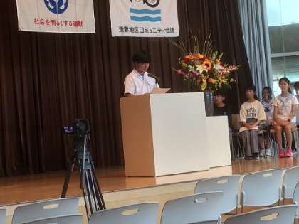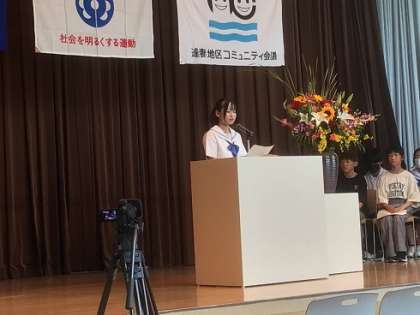 逢妻交流館にて、第74回「社会を明るくする運動」逢妻地区大会が開催されました。小・中学生の意見発表が行われ、美山小学校児童2名、小清水小学校児童2名、逢妻中学校生徒5名が参加しました。