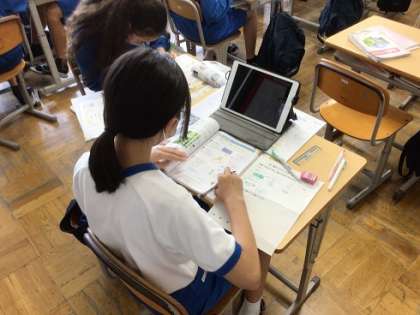 7月12日(金)授業の様子3 公開日 2024/07/13 更新日 2024/07/13 お知らせ 2年生の理科です。植物のつくりについて、資料や学習用タブレットを活用しながら自分で調べて、まとめています。図を書き込みながら、がんばっていました。