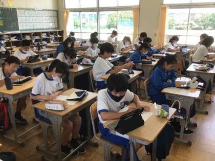 1年生です。逢妻地区にある福祉関連の施設等について、学習用タブレットを活用しながら調べ学習を進めていました。
