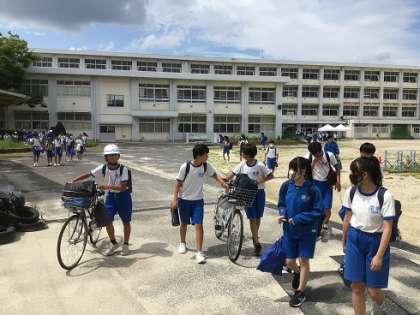 下校の様子です。明日から始まる夏休み。健康や安全に十分気をつけて、充実した夏休みにしていきましょう。