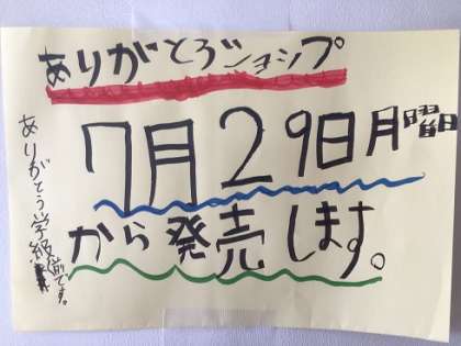 ありがとう学級の生徒たちが制作したグッズを販売する「ありがとうショップ」を個別懇談会の日程(7/29月〜8/1木)にあわせて開店します。