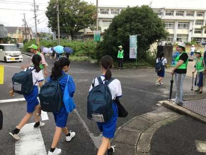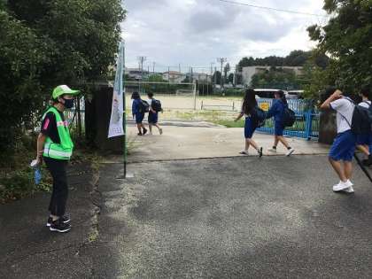 同じく南門付近の様子です。数日前は台風の影響が心配されましたが、逢中に子どもたちの姿が戻ってきました。民生児童委員の皆さん、逢中生に温かい声をかけていただき、ありがとうございました。